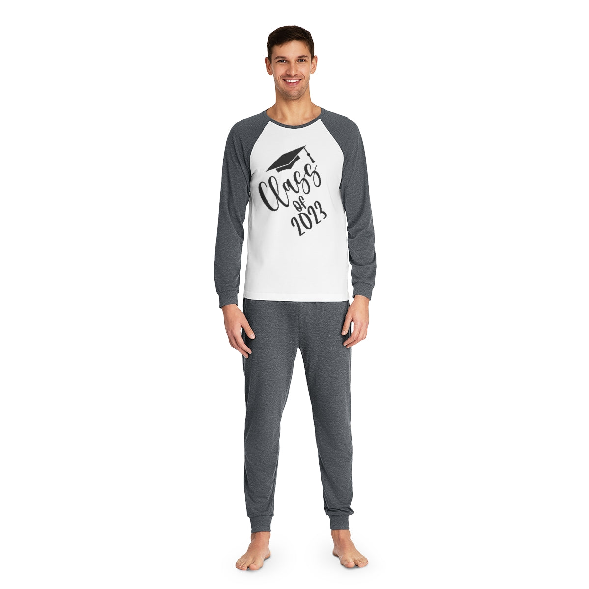 These personalized pajamas for him have both comfort and style in spades. Made with 100% cotton for total softness, each pajama set comes with raglan sleeves for a relaxed fit and pants with cuffed legs that add a practical touch.
