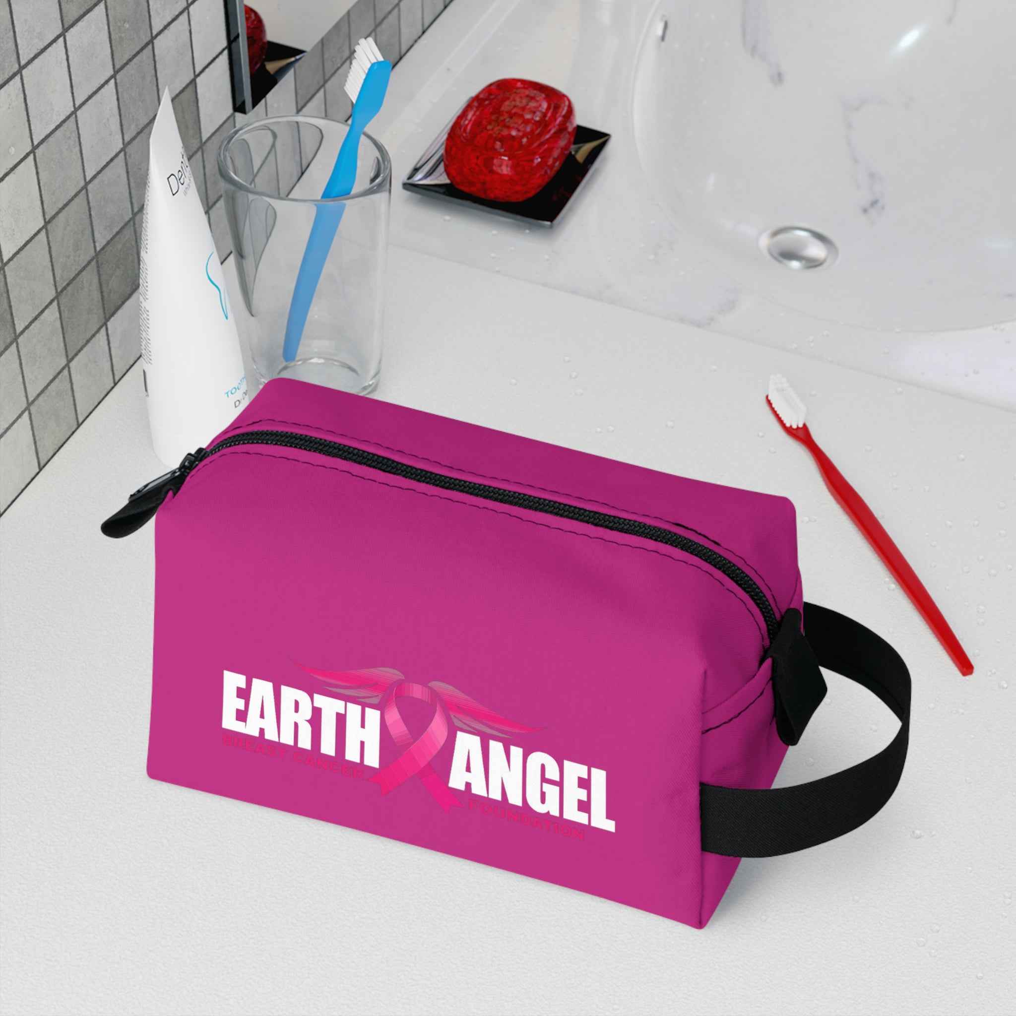 Earth Angel Pink Black Toiletry Bag