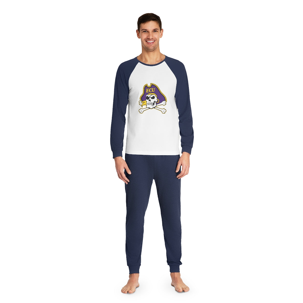 These personalized pajamas for him have both comfort and style in spades. Made with 100% cotton for total softness, each pajama set comes with raglan sleeves for a relaxed fit and pants with cuffed legs that add a practical touch.